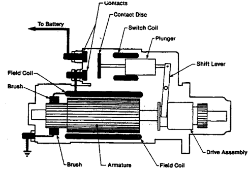 l 外殼和磁場線圈、轉(zhuǎn)子和換向環(huán)、馬達(dá)驅(qū)動機(jī)構(gòu)、電磁接觸器和切換桿、碳刷