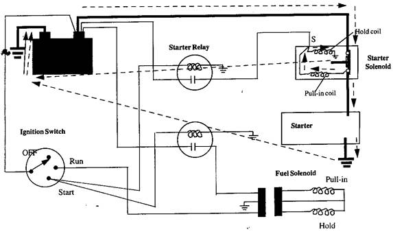 l 當(dāng)起動開關(guān)閉合時,電路流經(jīng)電磁閥吸入線圈和保持線圈、磁場線圈和轉(zhuǎn)子線圈。
