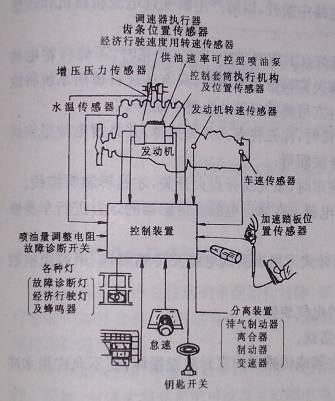 系統(tǒng)功能:預(yù)行程控制(供油速率、噴油提前角)噴油量控制,故障自診斷經(jīng)濟(jì)行程監(jiān)控,自動(dòng)控制車輛經(jīng)濟(jì)速度行駛等。