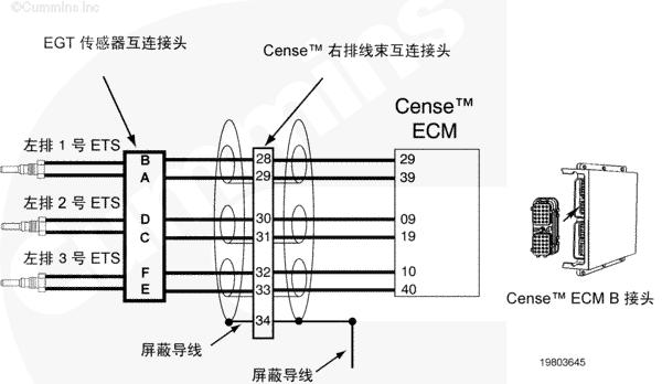 排氣溫度傳感器電路圖向 CENSE™ ECM 提供排氣溫度信號。排氣溫度傳感器為熱電偶。熱電偶是將兩種不同的金屬焊接起來構(gòu)成的。接合點(diǎn)隨溫度變化產(chǎn)生極小的電壓。