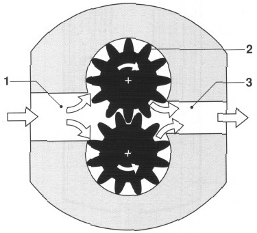 1-吸油端 2-驅(qū)動(dòng)齒輪 3-壓力端