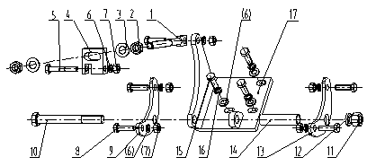 10.螺栓  11.螺母  12.墊圈  13.托板  14.圓管  15.螺栓  16.墊圈  17.支座