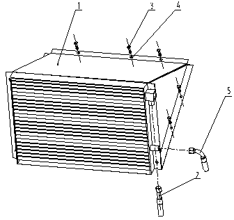 1.    蒸發(fā)器 2.儲(chǔ)液罐至蒸發(fā)器管 3.蒸發(fā)器至壓縮機(jī)管  4.螺栓  5.墊圈