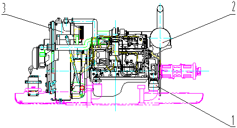 1-減震及傳動系統(tǒng) 2-排氣系統(tǒng) 3-冷卻系統(tǒng)