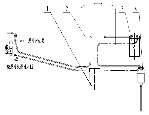 1-柴油精濾器 2-燃油箱 3-燃油粗濾器 4-油水分離器