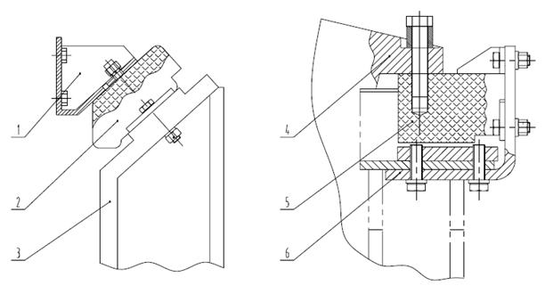 1、4-發(fā)動機(jī)支腿 2、5-減震墊 3、6-固定座