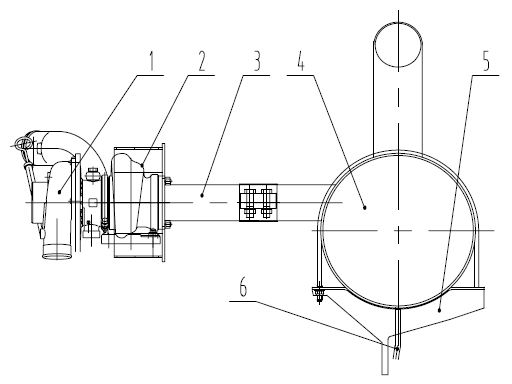 1-渦輪增壓器 2-防燙護(hù)罩 3-排氣管 4-消音器 5-支架 6-引水膠管