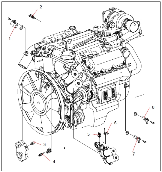 1 燃油溫度傳感器 5 機(jī)油壓力和溫度傳感器