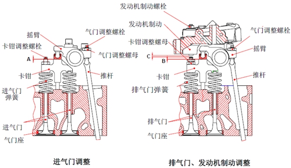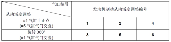 * 當(dāng)調(diào)整發(fā)動(dòng)機(jī)制動(dòng)從動(dòng)活塞時(shí),只調(diào)整相應(yīng)氣缸編號(hào)的排氣門。