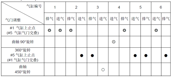 按照以下方法調(diào)整各氣缸氣門交疊