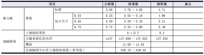 使用加大尺寸推力片時(shí),按照和使用加大尺寸推力片對(duì)應(yīng)的標(biāo)準(zhǔn)值研磨曲軸。