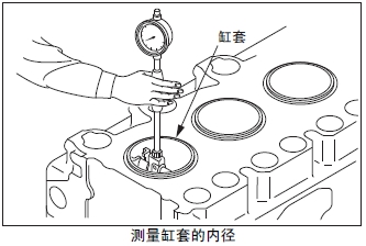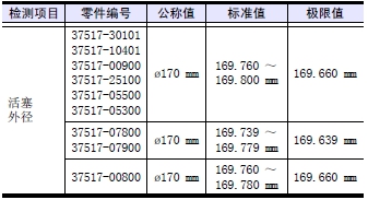 測(cè)量活塞銷孔的內(nèi)徑。超過(guò)極限值時(shí)更換新活塞。