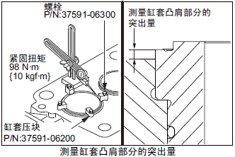 曲軸箱凹槽部分單側(cè)接觸時(shí),進(jìn)行研磨修正。用曲軸箱研磨機(jī)進(jìn)行研磨修正,使圓周4個(gè)方向的槽深誤差小于0.05mm。曲軸箱凹槽研磨修整后,測(cè)量缸套凸肩部分的突出量。