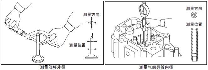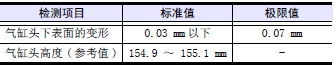 在曲軸箱的上表面放置直尺,用厚薄規(guī)測(cè)量變形量。超過(guò)極限值時(shí),更換新品或研磨修整。進(jìn)行研磨修整時(shí),要記錄最大研磨量。另外,氣缸頭下面進(jìn)行研磨修整時(shí),合計(jì)的最大研磨量限定在0.50 mm以內(nèi)。