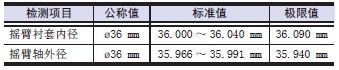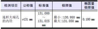 測(cè)量大端孔內(nèi)徑時(shí),分別按照?qǐng)D示A、B、C 方向,測(cè)量前后2 處。將A、B、C 的最大值減去最小值為橢圓量。超過(guò)極限值時(shí)更換新品。