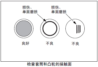 檢查滑動(dòng)面有無(wú)有害的燒損、異常磨耗、異物嵌入或鍍層剝落等。發(fā)現(xiàn)異常時(shí),更換新品。