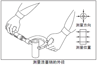 測(cè)量活塞銷的外徑。超過(guò)極限值時(shí)更換新的活塞銷。