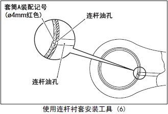 (1) 將新的連桿襯套的油孔對(duì)準(zhǔn)套筒A的裝配記號(hào)(ømm 紅色)裝在套筒A上。
