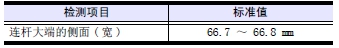 (2) 檢測(cè)連桿大端的側(cè)面( 寬)。不在標(biāo)準(zhǔn)值內(nèi)時(shí),更換新品。
