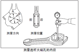 測(cè)量連桿襯套的內(nèi)徑。超過(guò)極限值時(shí)更換新的連桿襯套。