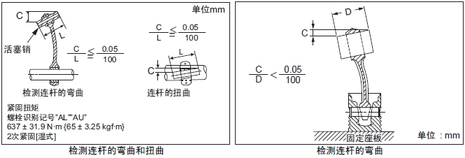 注: 彎曲和扭曲的檢測(cè),在將連桿端蓋按照規(guī)定扭矩緊固后進(jìn)行。