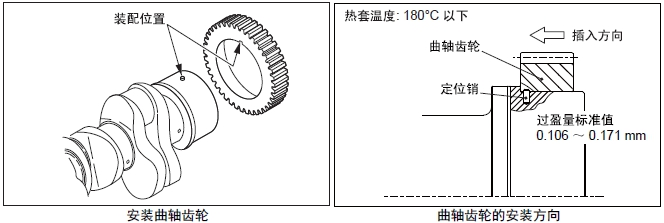 (1) 測(cè)量曲軸外徑和曲軸齒輪的內(nèi)徑,確認(rèn)過(guò)盈量。