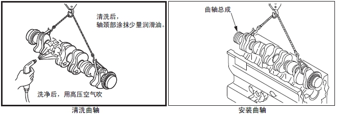 (3) 水平吊起曲軸,小心地放入曲軸箱內(nèi)。