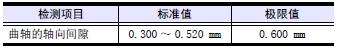 超過標(biāo)準(zhǔn)值時(shí),檢測推力片和曲軸。標(biāo)準(zhǔn)值以內(nèi)時(shí),在最后端的主軸承端蓋螺栓旋松的狀態(tài)前后移動(dòng)曲軸,再次檢測。