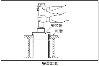 (4) 將缸套小心地插入曲軸箱體。使用適當(dāng)?shù)母滋装惭b器輕擊缸套,使缸套凸肩部分確實(shí)坐落在曲軸箱體上。然后,反復(fù)數(shù)次輕擊,確認(rèn)完全落實(shí)。