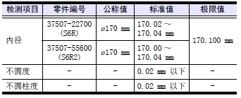 (3) 測量值不在基準(zhǔn)值范圍內(nèi),或凸緣部分有斷缺時(shí),更換新的缸套。
