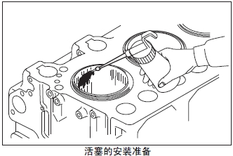 (3) 雙手抓住活塞的氣環(huán)部分,小心地將活塞裙部放入缸套。