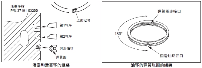 注意活塞環(huán)的不要上下反裝,反方向裝配時(shí),會(huì)引起發(fā)動(dòng)機(jī)燒損等故障。