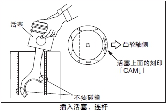 注: 注意活塞不要拉傷缸套,連桿大端不要碰撞缸套。