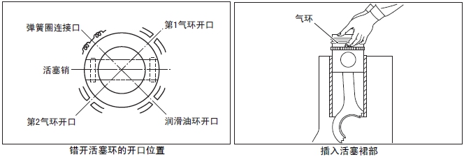 注: 參照上記(2) 項(xiàng),錯(cuò)開活塞環(huán)的位置。