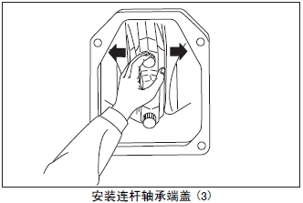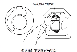 (6) 從曲軸箱體的側(cè)面檢測口檢查連桿的上軸瓦是否脫落。上軸瓦錯(cuò)位時(shí),用手推壓上軸瓦進(jìn)行調(diào)整。