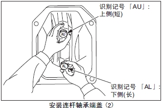 (3) 確認(rèn)三菱發(fā)動(dòng)機(jī)連桿軸承端蓋和連桿的裝配編號位于同一側(cè),并且裝配編號一致后,將連桿軸承端蓋安裝在連桿上。