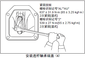 (7) 按照規(guī)定的扭矩緊固連桿螺栓。旋緊連桿螺栓時(shí),在按照規(guī)定扭矩緊固后,將螺栓完全旋松,再次按照規(guī)定的扭矩緊固。再次測量軸向間隙。