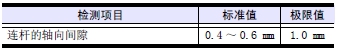 測量連桿的軸向間隙。超過極限值時(shí),更換故障原因的零部件。