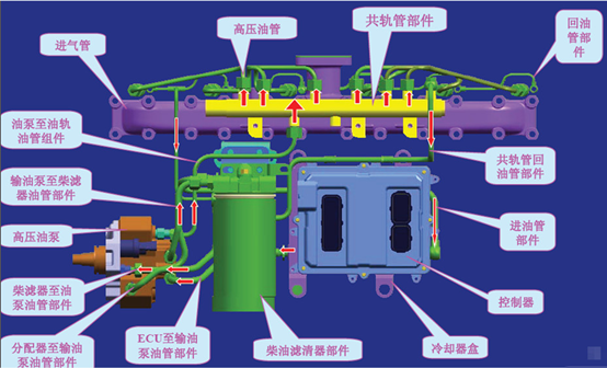 電控柴油發(fā)動機進氣側(cè)燃油管路布置