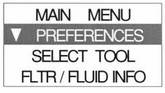 應當按"向下"鍵。突出顯示 "PREFERENCES(首選項)"設定。按 "OK" 鍵。