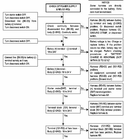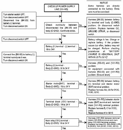 電源線(101-RD)的檢查,卡特彼勒312C 到 330C, 325C 和 M325C MH 除外