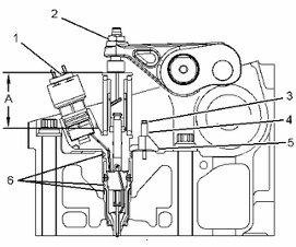 55±10N·m(41±7lbft)。A--單體噴油器的高度是從正時(shí)底座起進(jìn)行測(cè)量的。將單體噴油器的高度調(diào)整為