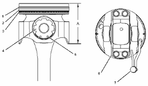 將活塞銷插入活塞體組件和連桿(6)中之前,先用清潔的發(fā)動機機油潤滑活塞銷。