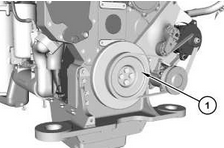 拆下皮帶輪 (1) 和皮帶。請參考皮帶預(yù)張緊器 - 拆卸和安裝。