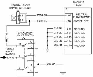 在電磁閥的機(jī)器線束接頭上,從觸點(diǎn) 1(導(dǎo)線 P955-BU)到觸點(diǎn) 2(導(dǎo)線 H807-YL)連接跨接線。 接頭內(nèi)。
