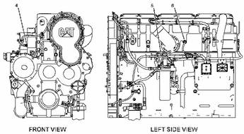 典型的 C15 和 C18 傳感器位置 (4) 發(fā)動機冷卻液溫度傳感器 (5) 燃油溫度傳感器 (6) 進氣歧管空氣溫度傳感器 |