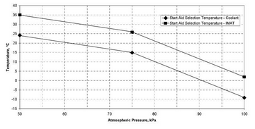 乙醚起動輔助根據(jù)冷卻液溫度、進氣岐管溫度和大氣壓力工況圖動作。請參閱插圖 1。
