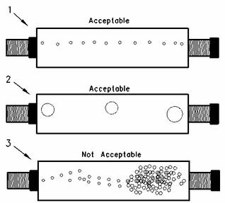 2P-8278管組件(目測(cè)表) (1)直徑大約為1.60mm(0.063in)的穩(wěn)定小氣泡流動(dòng)是燃油中容許的空氣量。 (2)如果氣泡之間的間隔為2到3秒,則容許直徑約為6.35mm(0.250in)的氣泡。 (3)燃油中氣泡過(guò)多是不容許的。 |