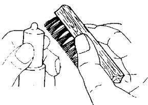 利用8S-2245噴油器清理工具總成內配備的8S-2258黃銅絲刷清理積碳。 |