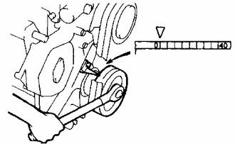 松開(kāi)固定螺栓。沿發(fā)動(dòng)機(jī)方向轉(zhuǎn)動(dòng)燃油泵延遲噴油正時(shí),而沿遠(yuǎn)離發(fā)動(dòng)機(jī)的方向轉(zhuǎn)動(dòng)燃油泵提前噴油正時(shí)。